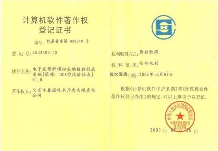 2003年循环链码项目获国家版权局颁发《计算机软件著作权登记证书》,企业享受软件退税优惠政策