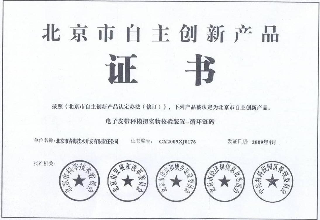 2009年循环链码被北京市五部委评为《北京市区自主创新产品》